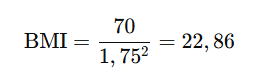 Załóżmy, że ważysz 70 kg i masz 1,75 m wzrostu. Twoje BMI obliczamy następująco: